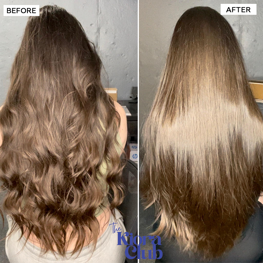 No — Kioras lightweight formula absorbs quickly, leaving hair soft, silky, and touchable without residue.